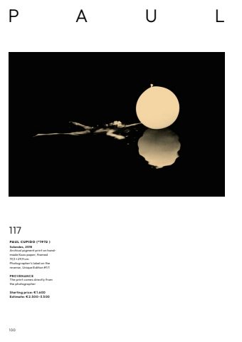 PAUL100117PA U L C U P I D O ( * 1 9 7 2 ) Solandes, 2018Archival pigment print on handmade Kozo paper, framed19,3 %u00d7 29,9 cmPhotographer%u2019s label on the reverse, Unique Edition #1/1PROVENANCEThe print comes directly from the photographerStarting price: %u20ac 1.600Estimate: %u20ac 2.500%u20133.500